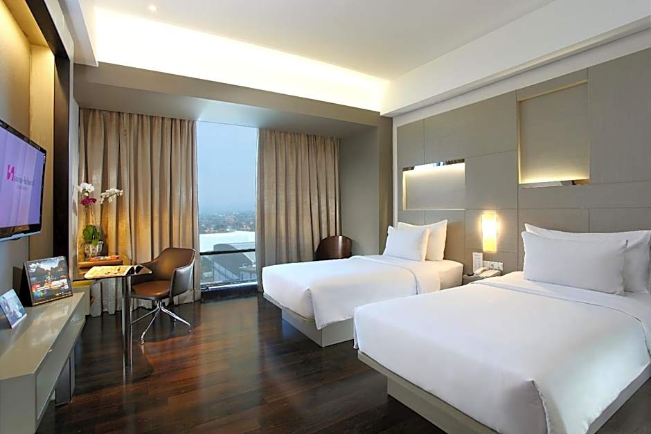Kamar Deluxe Twin - Dapat Merokok This air-conditioned room is well equipped with a flat-screen cable TV, electric kettle and a mini-bar. Private bathroom provides a shower, towels and free toiletries.